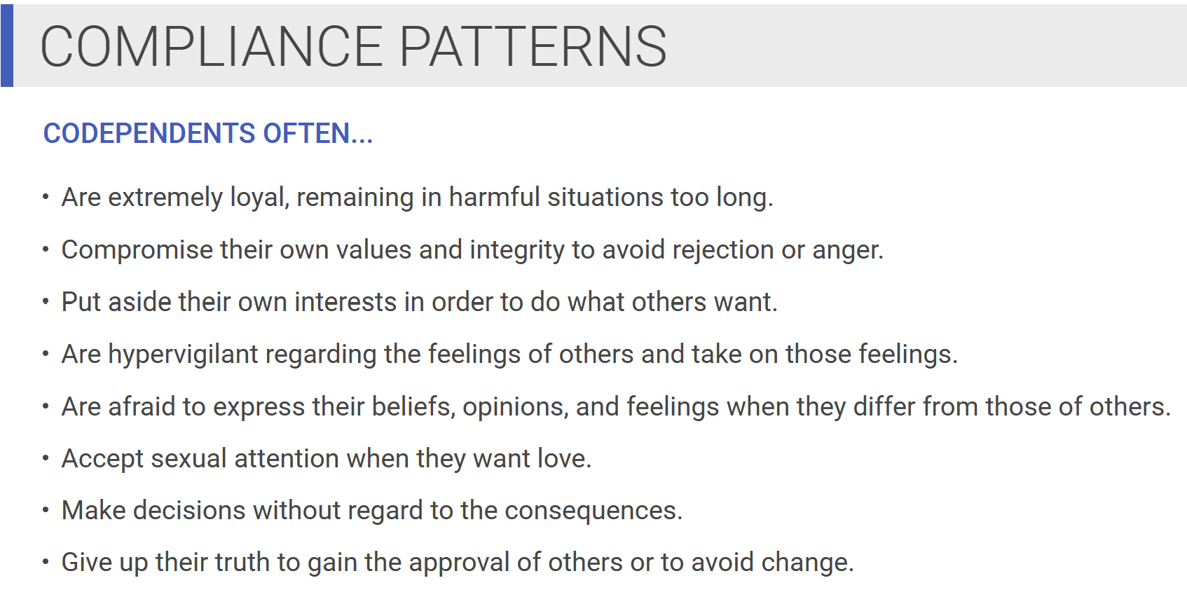 "Keep coming back, it works if you work it, so work it because you're worth it." That's how every single meeting ends each week. Being an anonymous program and organization, it's not always discussed, but in all actuality, it is something everyone struggles with to some extent. Codependency. Everyone has those scary words, and for me, one of them is that c-word. Codependency. According to coda.org, codependency is a "a disease that deteriorates the souls." Joining any sort of recovery program isn't an easy decision, and sticking with it isn't any easier. When I was first introduced to the idea that I was codependent, I was in a little bit of denial. I didn't think I was, but I went ahead and gave the program a chance. I was at a point in my treatment and healing that I felt I didn't have anything to lose and thought, "what could it hurt" if I went. Worst case scenario, I went and it wasn't the right fit and I never go back. But I decided to go. I looked up and did some research on the topic and searched for an open meeting in the area. I found one, which happened to be going on the next day, and I went. It was a room full of strangers and I just sat there in silence while listening to all these other people talk about their journey and where they are in their codependency. I didn't quite believe it was for me at first, but the longer I sat there, the more I started this internal questioning of if I was actually codependent, and for how long I have been codependent. Outside of the meeting, I looked more into the different patterns, and that only confirmed be being codependent.
